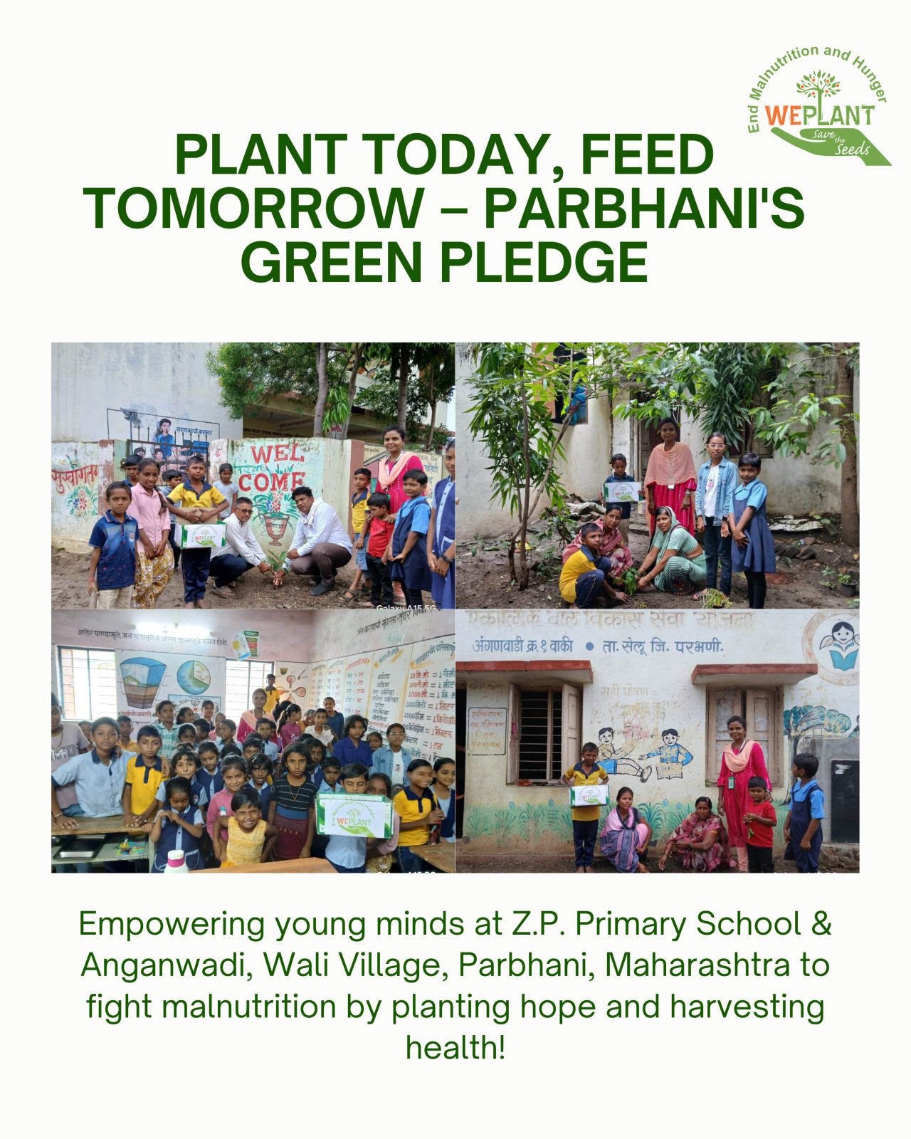 On 7th July 2025, the campus of Z.P. Primary School and Anganwadi, Wali Village (Parbhani, Maharashtra) came alive with excitement, purpose, and greenery. The school community came together for a vibrant Plantation Drive, turning the grounds into a living classroom of sustainability.