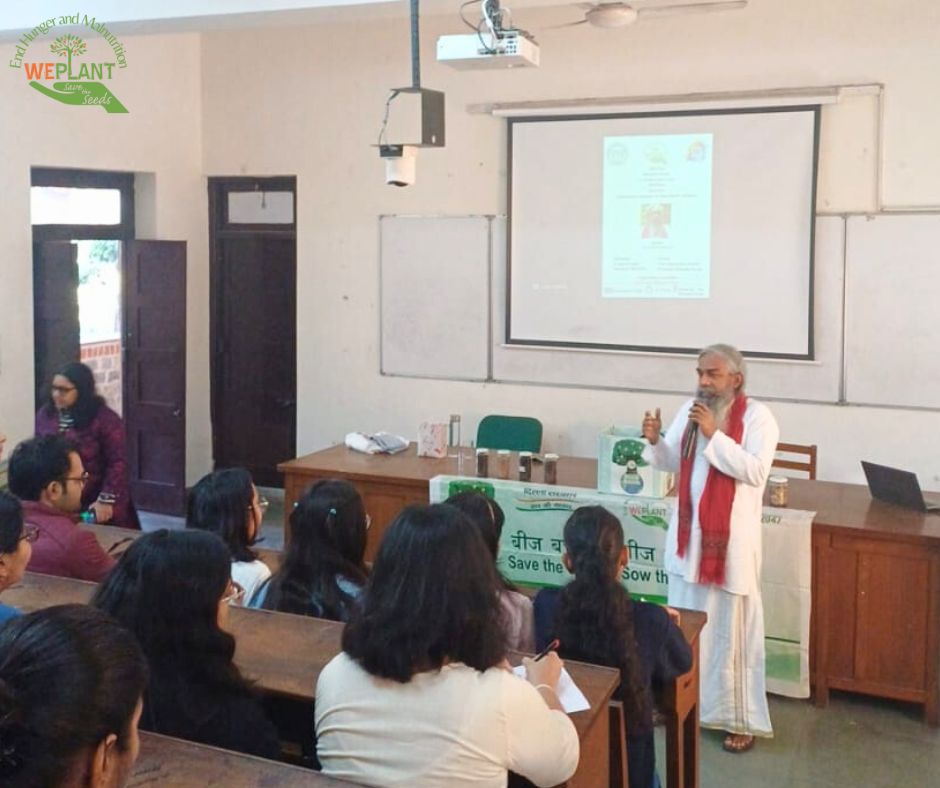 WePLANT India, in collaboration with Miranda House College's SDG Club and Bharat Soka Gakkai, proudly launched a transformative SeedBank Initiative at the University of Delhi. This initiative is a significant step toward fostering environmental sustainability, ensuring food security, and empowering communities to combat hunger and malnutrition.